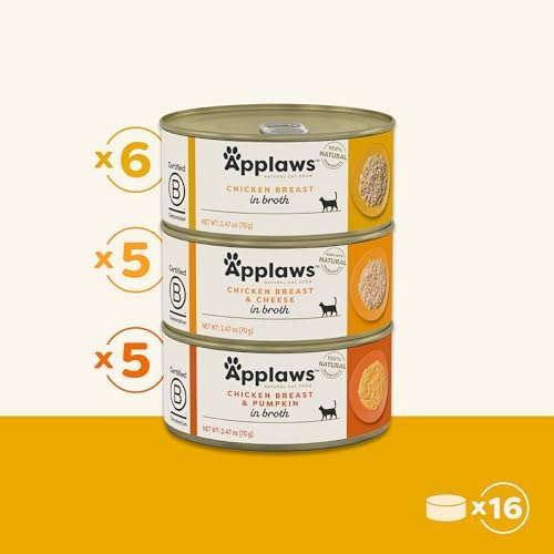 Applaws Wet Cat Food, 16 Count, Limited Ingredient Canned Wet Cat Food, Chicken Selection Variety Count in Broth, 2.47oz Cans