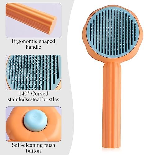 1. The cat brush has a self-cleaning button. After brushing your pet, you just need to press the button to separate the hair from the metal pins, and then wipe the hair.