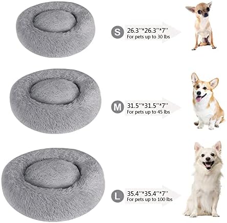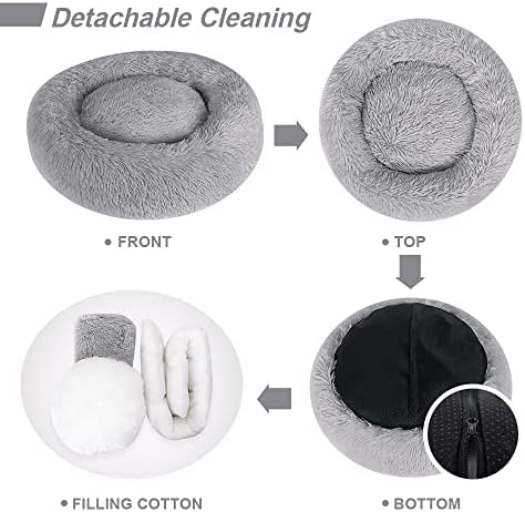 SearchI Dog Bed, Fluffy Donut Pet Bed, Plush Dog Sofa, Cat Sofa Cushion, Soft PV Plush Cat Bed, Removable Washable Bed for Dogs and Cats. High Quality Material The soft fluffy donut pet bed is filled with plush and environmentally friendly PP cotton, which is comfortable and comfortable breathable. It is a good gift to make your friends happy day and night. Size: diameter 60 cm, diameter 80 cm, diameter 90 cm. Please check the size details carefully before you order, thank you! ? ?Notes:This product is vacuum packed. Please wait 30 minutes after unpacking and shake the dog bed to restore the best condition. UNIQUE DESIGN The dog bed is the ideal choice for pets who like to sleep rolled up. The round shape and raised edge provide security and support for the head and neck, while the ultra-soft filling relieves joint pain and improves health. EASY TO CLEAN Cleaning is easy as the bottom of the dog mat has a zipper. So you can remove the bottom area to clean all the elements and make your pet’s life more hygienic. NON SLIP SAFETY BASE The bottom of the cozy dog bed is made of non slip, sticky beads and waterproof fabric, it is non slip and mildew free. It keeps the pet bed in place and ensures worry-free placement on tile and wooden floors at home.