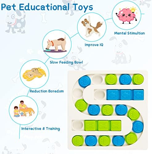 Intelligent design: 25 holes, more challenges, more fun, interactive dog food toy has multiple pleasure compartments, and moving parts will keep your dog busy while teaching them problem solving skills. In this slow food bowl there are some moving sliders, and there are linear and rotating movements, different movement methods can effectively train your dog’s cognitive skills.