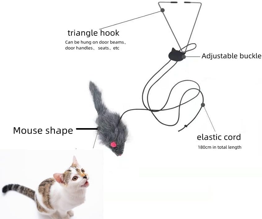 – Adjustable and retractable hanging door small mouse teases cat toys, frees the nature of cats and makes them smarter.