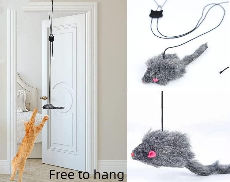 2 Pieces Interactive Cat Toy, Hanging Cat Toy for Door Frame, Cat Mouse Toy, Hanging Door Plush Mice, Plush Mouse for Door Frame, Retractable with Plush Mice