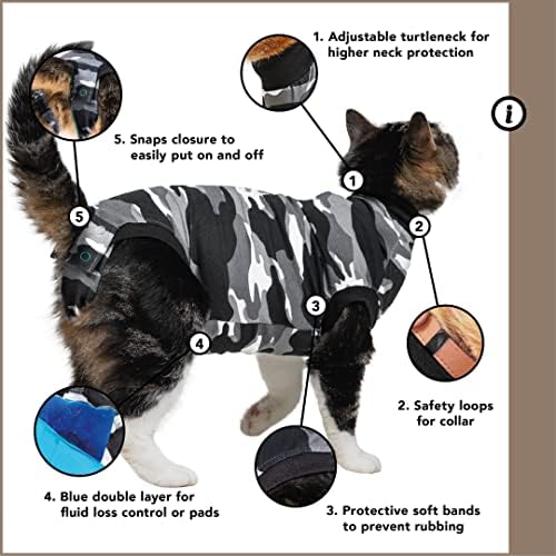 Suitical Recovery Suit for Cats | Spay and Neutering Cat Surgery Recovery Suit for Male or Female | Soft Fabric for Skin Conditions | XS | Neck to Tail 15.7” – 17.7″ | Black Camouflage